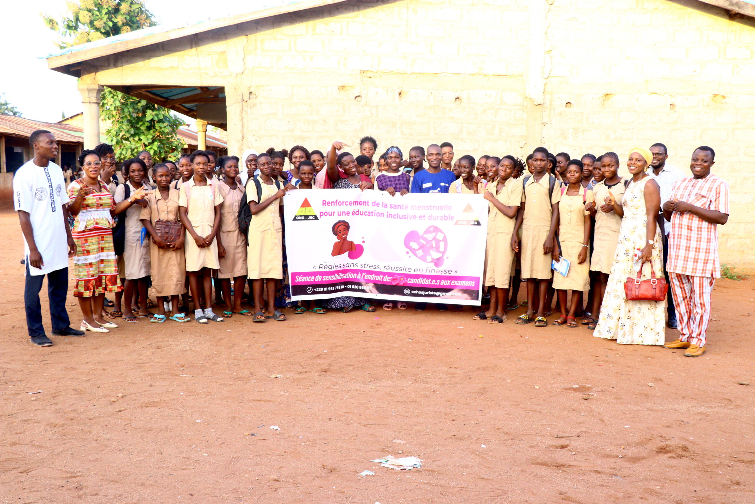 À quelques jours des examens du BEPC et du BAC, l’ONG Juriste Échos Consult (JEC), en partenariat avec l’ONG Espoir d’une Vie, a organisé une séance de sensibilisation à l’endroit des filles candidates du CEG Agassa-Godomey. Objectif : briser les tabous autour des menstruations et aider les jeunes filles à aborder cette période avec confiance, même en pleine composition.